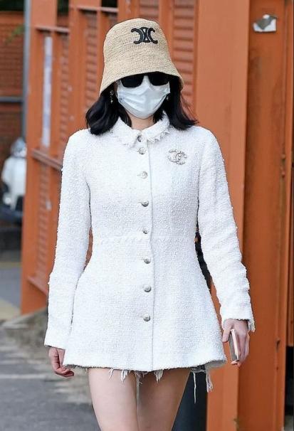 自车祸以来,她仅有一次在未戴口罩的情况下被拍到(上图)
